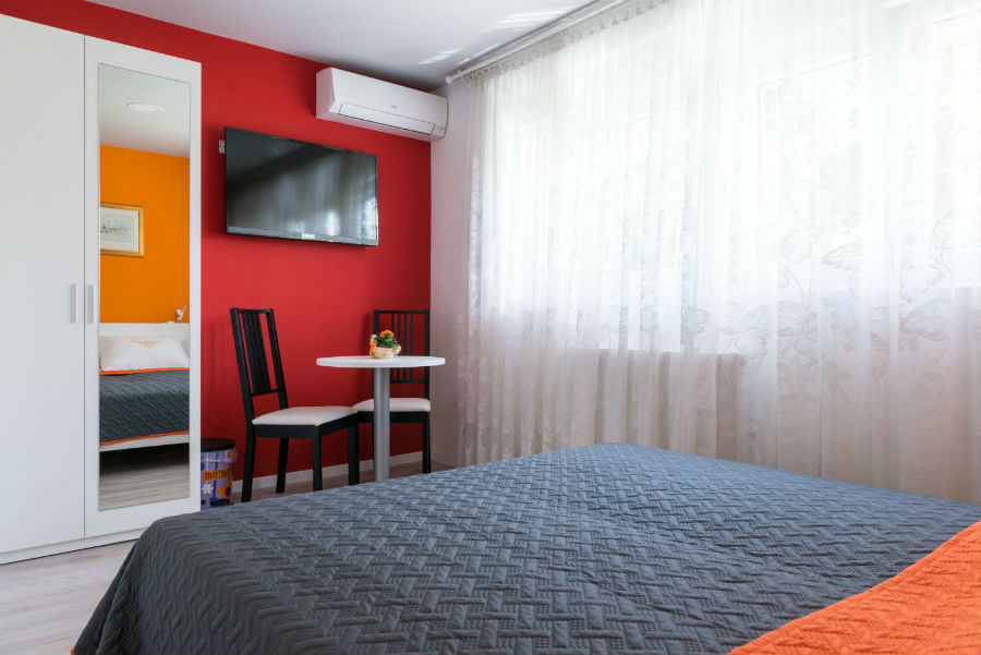 Soba opremljena s bračnim krevetom, klima uređajem, centralnim grijanjem, televizorom, te vlastitom kupaonicom s walk-in tušem.